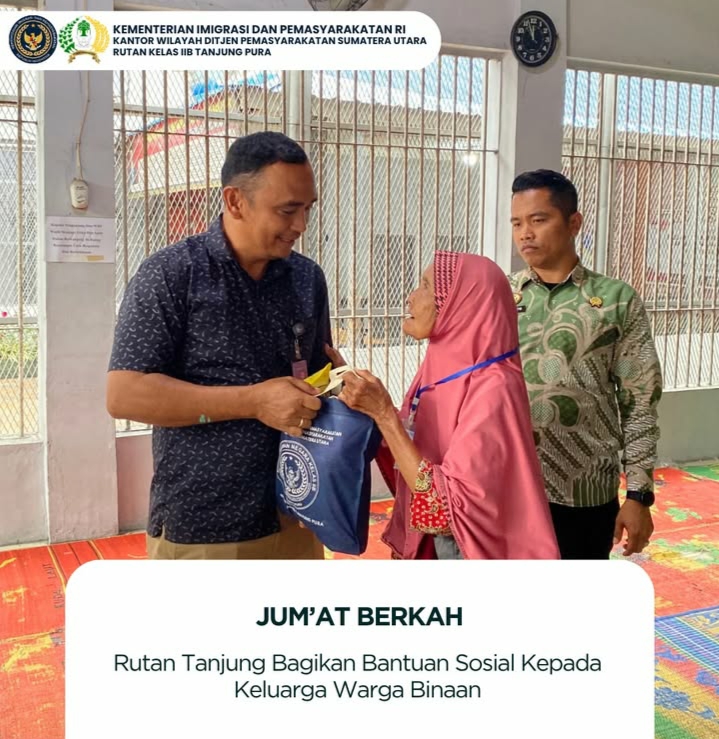 TIMELINES INEWS INVESTIGASI, Tanjung Pura Rumah Tahanan Negara (Rutan) Kelas IIB Tanjung Pura kembali menunjukkan kepeduliannya terhadap masyarakat melalui kegiatan Jumat Berkah dengan menyalurkan bantuan sosial (bansos) kepada keluarga warga binaan, Jumat (17/10/2025).