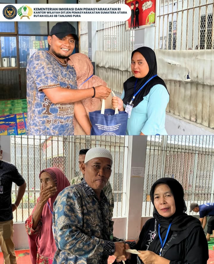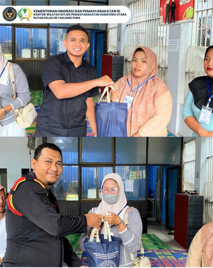 Penyerahan bantuan dilakukan secara simbolis di ruang kunjungan Rutan Tanjung Pura kepada keluarga warga binaan yang membutuhkan. Paket bantuan berisi kebutuhan pokok sehari-hari yang diharapkan dapat meringankan beban ekonomi keluarga penerima.