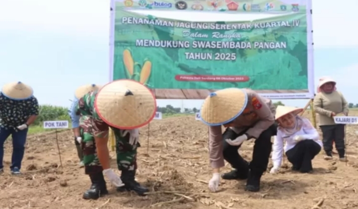 Dalam sambutannya, Kombes Pol Hendria Lesmana menegaskan bahwa kegiatan tanam jagung serentak ini merupakan bentuk sinergi konkret antara Polri, pemerintah daerah, dan masyarakat untuk menjaga ketersediaan pangan.