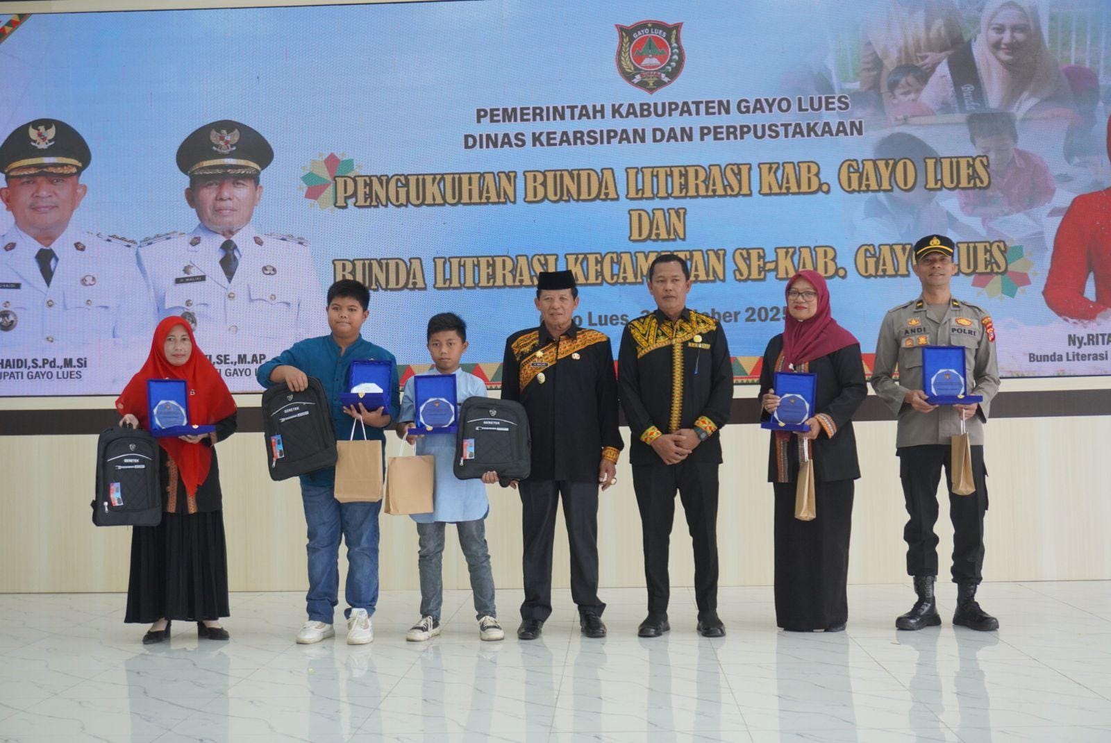 Penyerahan penghargaan dilakukan oleh Wakil Bupati Gayo Lues, H. Maliki, S.E., M.A.P., mewakili Bupati H. Suhaidi, S.Pd., M.Si., dalam Acara Pengukuhan Bunda Literasi yang berlangsung di Pendopo Bupati Gayo Lues.