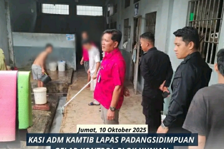 TIMELINES INEWS INVESTIGASI, Padangsidimpuan Untuk menjaga suasana aman, tertib, dan kondusif di dalam Lembaga Pemasyarakatan (Lapas) Kelas IIB Padangsidimpuan, Kepala Seksi Administrasi Keamanan dan Ketertiban (Kasi Adm Kamtib) Ambri bersama petugas pengamanan rutin melakukan kontrol ke blok hunian warga binaan, Jumat (10/10/2025)