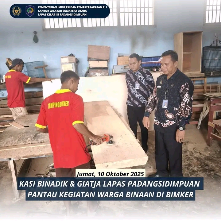 TIMELINES INEWS INVESTIGASI, Padangsidimpuan, Dalam upaya memastikan pelaksanaan pembinaan dan kegiatan kerja produktif berjalan efektif dan tertib, Kasi Binadik & Giatja (Bimbingan Narapidana dan Anak Didik & Kegiatan Kerja) Lembaga Pemasyarakatan (Lapas) Kelas IIB Padangsidimpuan, Erikjen Silalahi melakukan pemantauan langsung ke ruang Bimbingan Kerja (Bimker) warga binaan, Jumat (10/10/2025)