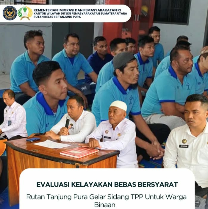 Kegiatan ini dipimpin langsung oleh Kepala Rutan Tanjung Pura, Fransisco Pandia, dan dihadiri oleh pejabat struktural serta staf Rutan. Sidang TPP ini menjadi langkah penting dalam menilai kesiapan warga binaan untuk kembali dan beradaptasi secara bertahap di tengah masyarakat.