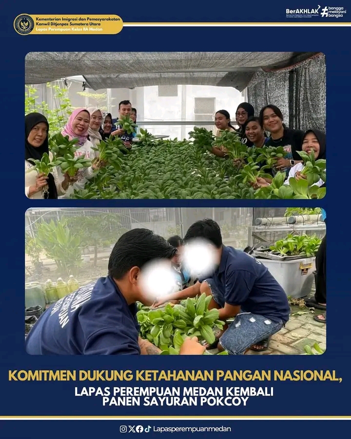 TIMELINES INEWS INVESTIGASI, Medan Lembaga Pemasyarakatan Perempuan (Lapas) Kelas IIA Medan, kembali menunjukkan komitmennya dalam mendukung program ketahanan pangan nasional. Kali ini, komitmen tersebut diwujudkan melalui panen sayuran pokcoy yang berlangsung di area green house pada Jumat (16/10).