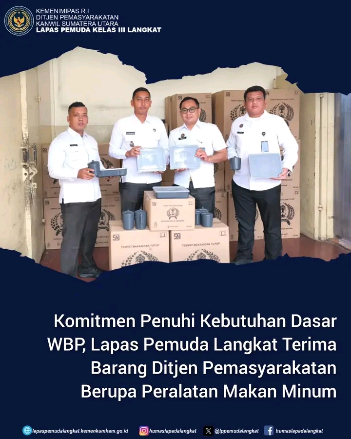 TIMELINES INEWS INVESTIGASI, Langkat Lembaga Pemasyarakatan Pemuda Kelas III Langkat dalam memberikan peningkatan pemenuhan kebutuhan dasar kepada Warga Binaan Pemasyarakatan, kembali menerima peralatan makan dari Ditjen Pemasyarakatan Tahun Anggaran 2025, Rabu (22/10/2025).