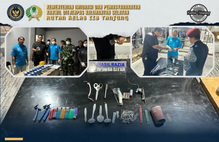 komitmen mewujudkan Rumah Tahanan Negara (Rutan) yang bersih dari Handphone, Pungli, dan Narkoba (Halinar), Rutan Kelas IIB Tanjung melaksanakan razia dadakan secara serentak bersama jajaran TNI dan Badan Narkotika Nasional (BNN) Kabupaten Tabalong. Kegiatan ini digelar pada malam hari sebagai langkah tegas dalam menjaga keamanan dan ketertiban lingkungan pemasyarakatan.