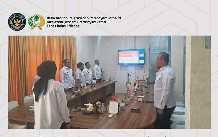Lapas Kelas I Medan mengikuti kegiatan tersebut dari ruang kerja Kepala Lapas Medan. Hadir dalam kegiatan ini Kepala Bagian Tata Usaha sekaligus Pelaksana Harian (Plh) Kalapas Kelas I Medan, Nurma Yuliati, didampingi Kepala Kesatuan Pengamanan Lapas (Ka. KPLP), Rinaldo Adeta Noah Tarigan; Kepala Bidang Administrasi Keamanan dan Ketertiban, Andik Ariawan; Kepala Bidang Kegiatan Kerja, Yan Patmos; Kepala Bidang Pembinaan, Prayoga Yulanda; serta para pejabat struktural Eselon IV Lapas Kelas I Medan.