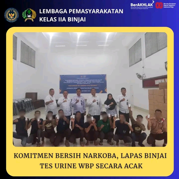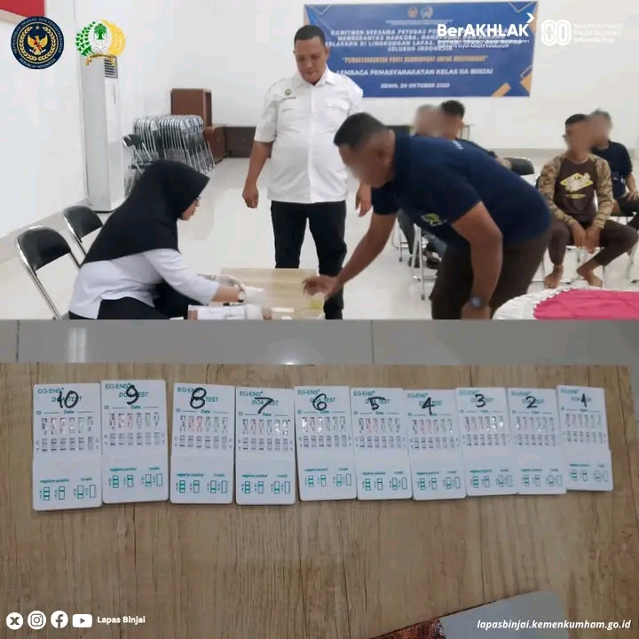 TIMELINES INEWS INVESTIGASI, Binjai, 22 Oktober 2025 Dalam upaya menjaga lingkungan lembaga yang bersih dari penyalahgunaan narkoba, Lembaga Pemasyarakatan (Lapas) Kelas IIA Binjai melaksanakan tes urine mendadak bagi warga binaan pemasyarakatan (WBP) khusus tamping (tahanan pendamping), pada Rabu pagi (22/10/2025).