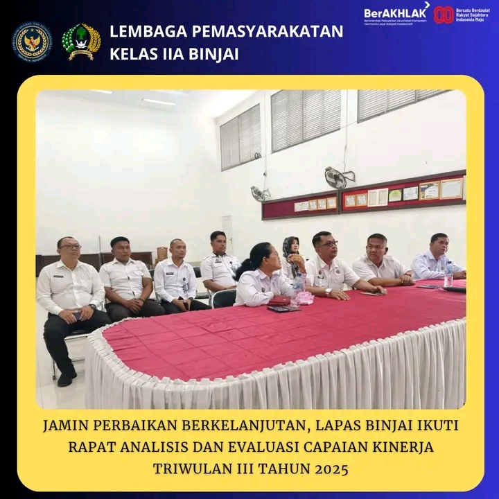 TIMELINES INEWS INVESTIGASI, Binjai Lembaga Pemasyarakatan (Lapas) Kelas IIA Binjai mengikuti kegiatan Rapat Analisis dan Evaluasi (Anev) Capaian Kinerja Triwulan III Tahun 2025 yang diselenggarakan secara daring oleh Kementerian Imigrasi dan Pemasyarakatan (Kemenimipas) Republik Indonesia, Kamis (16/10/2025).
