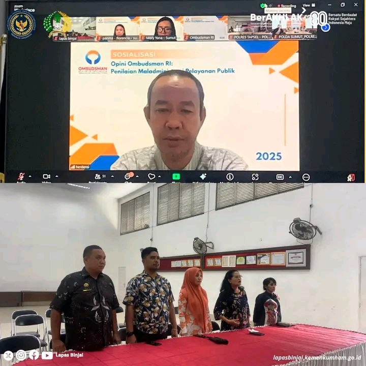 TIMELINES INEWS INVESTIGASI, Binjai, 10 Oktober 2025 Lembaga Pemasyarakatan (Lapas) Kelas IIA Binjai mengikuti kegiatan Sosialisasi Penilaian Maladministrasi Penyelenggaraan Pelayanan Publik Tahun 2025 yang diselenggarakan oleh Ombudsman Republik Indonesia Perwakilan Provinsi Sumatera Utara secara daring melalui aplikasi Zoom, pada Jumat (10/10).
