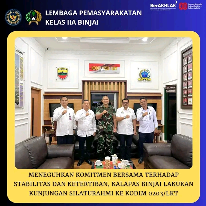 TIMELINES INEWS INVESTIGASI, Binjai Kepala Lembaga Pemasyarakatan (Lapas) Kelas IIA Binjai, Wawan Irawan, bersama jajaran pejabat struktural melakukan kunjungan silaturahmi ke Komando Distrik Militer (Kodim) 0203/Langkat, Rabu (29/10/2025).