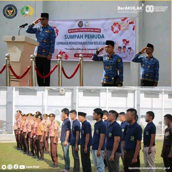 TIMELINES INEWS INVESTIGASI, Binjai Dalam suasana penuh khidmat dan semangat kebangsaan, Lembaga Pemasyarakatan (Lapas) Kelas IIA Binjai menggelar upacara peringatan Hari Sumpah Pemuda ke-97 Tahun 2025 dengan tema “Pemuda Pemudi Bergerak, Indonesia Bersatu.”