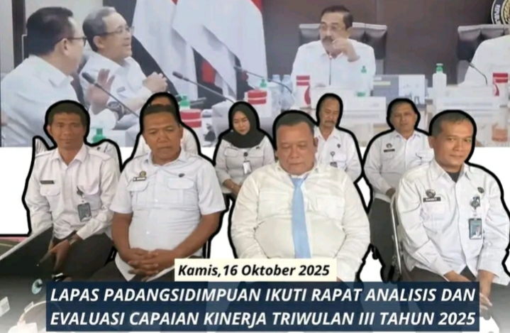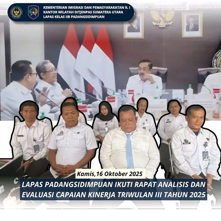 TIMELINES INEWS INVESTIGASI, Padangsidimpuan, Lembaga Pemasyarakatan Kelas IIB Padangsidimpuan mengikuti kegiatan Rapat Analisis dan Evaluasi (Anev) Capaian Kinerja Triwulan III Tahun 2025 Kementerian Imigrasi dan Pemasyarakatan yang dilaksanakan secara virtual melalui Zoom Meeting pada Kamis (16/10/2025) mulai pukul 09.30 WIB hingga selesai.
