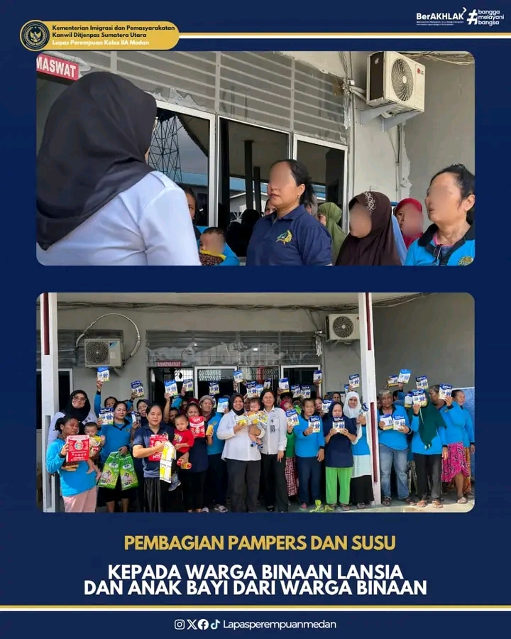 TIMELINES INEWS INVESTIGASI, Medan Lembaga Pemasyarakatan (Lapas) Perempuan Kelas IIA Medan terus menunjukkan kepeduliannya terhadap kesehatan dan kesejahteraan warga binaan dengan melaksanakan kegiatan pembagian susu dan pampers kepada Warga Binaan lanjut usia (lansia) serta anak-anak bawaan yang tinggal di dalam Lapas.
