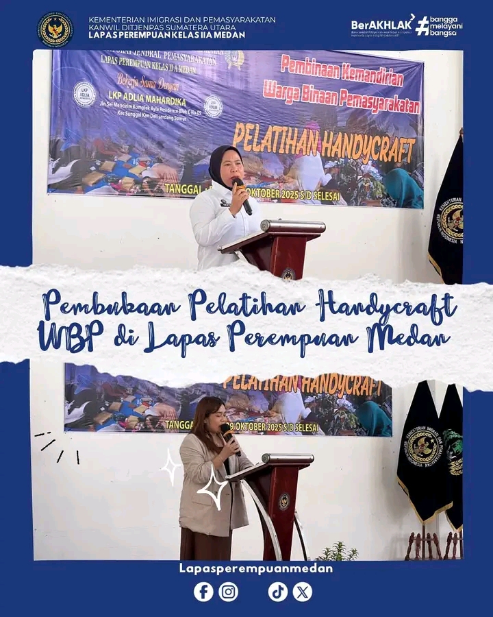 “Handycraft bukan sekadar kegiatan membuat kerajinan, namun juga sarana untuk menyalurkan ide, melatih kesabaran, dan menciptakan nilai ekonomi dari kreativitas. Kami percaya setiap individu memiliki potensi yang dapat dikembangkan, dan kegiatan seperti inilah yang membuka jalan menuju perubahan positif,” ujar Kalapas Perempuan Medan, Yekti Aprianti, dalam sambutannya.