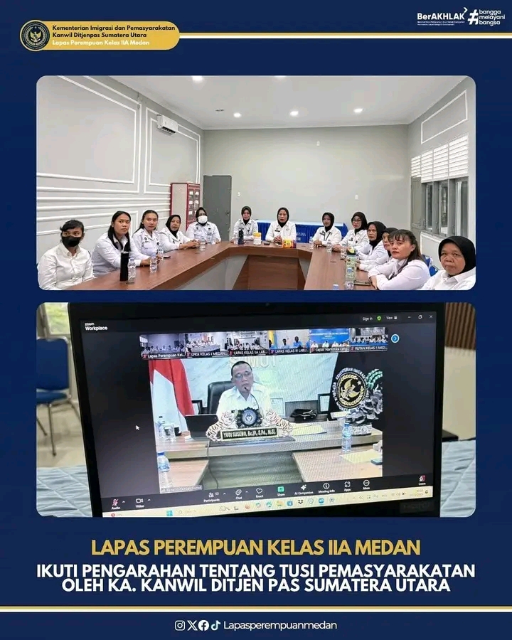 TIMELINES INEWS INVESTIGASI, Medan Lembaga Pemasyarakatan (Lapas) Perempuan Kelas IIA Medan mengikuti kegiatan Zoom Meeting Penguatan Tugas dan Fungsi (Tusi) Pemasyarakatan yang dipimpin langsung oleh Kepala Kantor Wilayah Direktorat Jenderal Pemasyarakatan (Ditjenpas) Sumatera Utara.