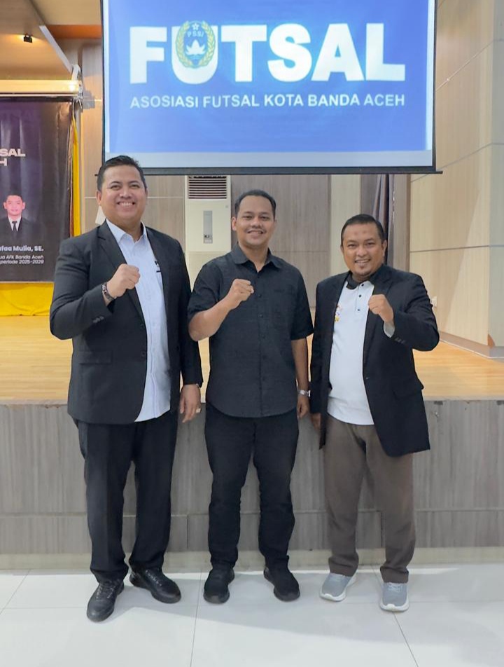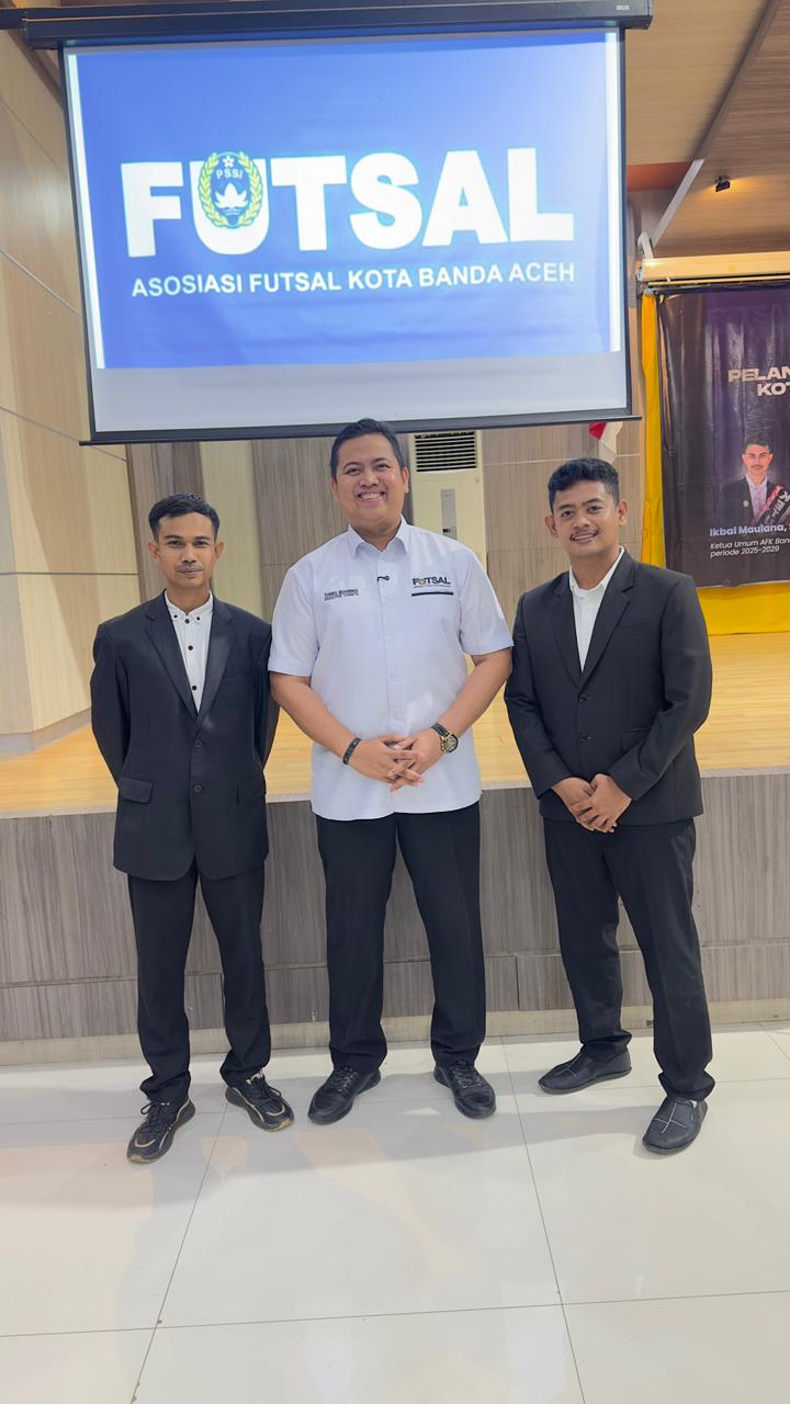 TLII>>M. Khalid dari Asosiasi Futsal Aceh (AFA) resmi melantik kepengurusan Asosiasi Futsal Kota Banda Aceh (AFK) periode 2025-2029. Posisi ketua umum kali ini dipegang Ikbal Maulana dan Rifki Aufaa Mukia menjadi waketum.