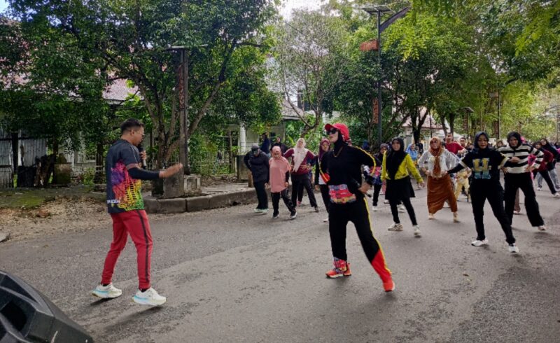 Masyarakat mengikuti Senam Sehat yang dipandu oleh Teh Rina pada Car Free Day di Kota Langsa. (Foto : Timelinesinews.com)