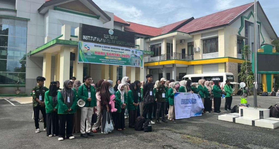 Peserta BAKOMAS dilepas langsung oleh Wakil Rektor III IAIN Langsa, Prof. Dr. Iskandar, M.Cl, dan turut dihadiri Dekan FUAD, Dr. Mawardi, M.Si, beserta Wakil Dekan I, Dr. Arif Muammar, S.HI, M.Pem.I, Wakil Dekan II, Dr. Rusli, MA, Wakil Dekan III, Dr. Danil Putra Arisyandi, M.Kom.I, Ketua Prodi BKI, Marimbun, M.Pd, dan Sekretaris Prodi BKI, Wan Chalidaziah, M.Pd di di halaman Rektorat IAIN Langsa.