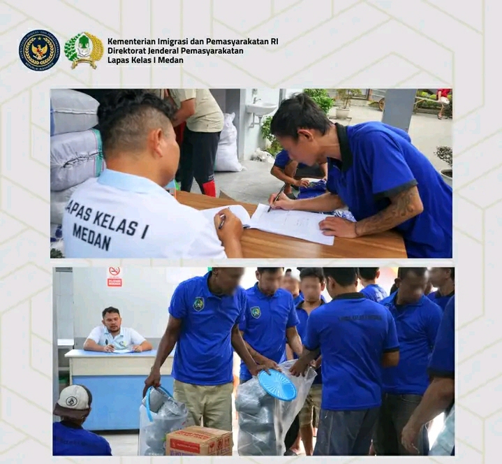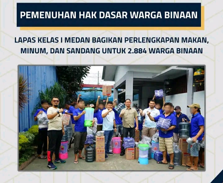 TIMELINES INEWS INVESTIGASI, Medan, Lembaga Pemasyarakatan Kelas I Medan melaksanakan kegiatan pembagian perlengkapan makan dan minum, serta kebutuhan sandang berupa kaos berwarna biru kepada seluruh warga binaan yang berjumlah 2.884 orang.