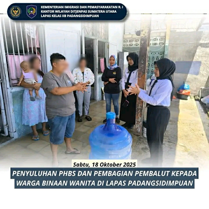 Padangsidimpuan Dalam rangka meningkatkan kesadaran akan pentingnya menjaga kebersihan dan kesehatan pribadi, Lembaga Pemasyarakatan Kelas IIB Padangsidimpuan menggelar kegiatan Penyuluhan Perilaku Hidup Bersih dan Sehat (PHBS) bagi warga binaan wanita, pada, Sabtu (18/10/2025)