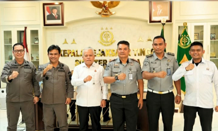 TIMELINES INEWS INVESTIGASI, Medan Kepala Rumah Tahanan Negara (Rutan) Kelas IIB Tanjung Pura, Fransisco Pandia, bersama Kepala Lapas Narkotika Kelas IIA Langkat, Tapianus Antonio Barus, dan Kepala Rutan Kelas IIB Pangkalan Brandan, Akmalun Ikhsan, melakukan kunjungan silaturahmi ke Kantor Kejaksaan Tinggi (Kejati) Sumatera Utara di Medan.