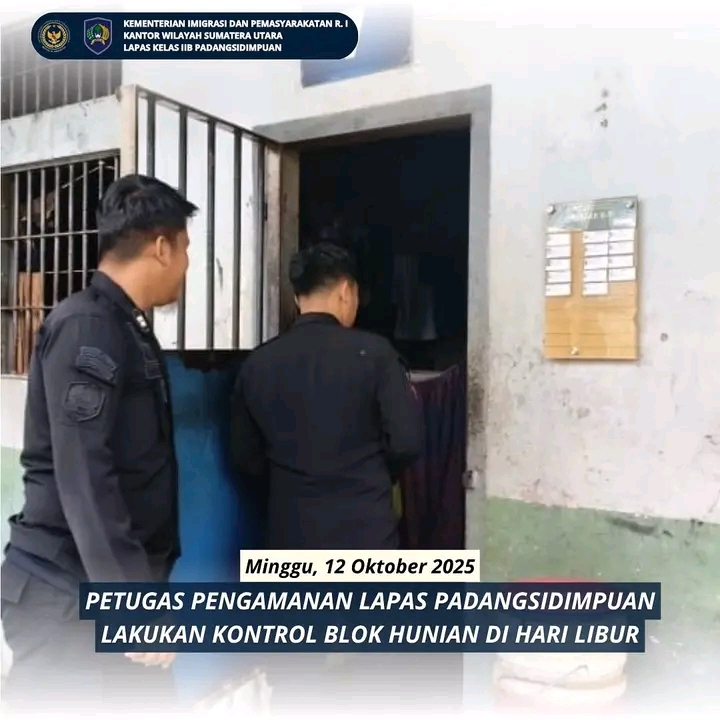 TIMELINES INEWS INVESTIGASI, Padangsidimpuan Meski tengah berada di hari libur, staff pengamamanan Lembaga Pemasyarakatan (Lapas) Kelas IIB Padangsidimpuan tetap menunjukkan dedikasi tinggi dengan melaksanakan kontrol rutin ke blok-blok hunian warga binaan, Minggu (12/10/2025)