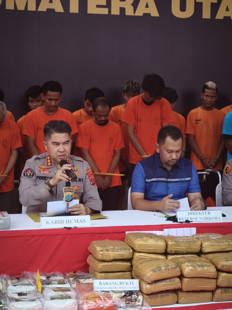 Paparan ini bersama Dirresnarkoba Polda Sumut Kombes Pol Jean Calvijn Simanjuntak, diikuti Kapolresta Deliserdang Kombes Pol Hendria Lesmana, Kapolres Serdangbedagai AKBP Jhon Sitepu, serta Kapolres Tebingtinggi AKBP Simon Paulus Sinulingga.