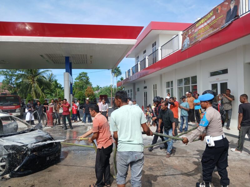 TLii. PIDIE JAYA – Satu unit mobil Toyota Vios terbakar saat sedang mengisi bahan bakar di SPBU PT. Hurrem Perta Energy No. 14.241.114, Jalan Iskandar Muda, Gampong Meunasah Jurong, Kecamatan Meurah Dua, Kabupaten Pidie Jaya Senin (13/10/2025) sekira pukul 09.15 WIB. Peristiwa tersebut menyebabkan dua orang mengalami luka bakar dan kerugian materil diperkirakan mencapai Rp100 juta.
