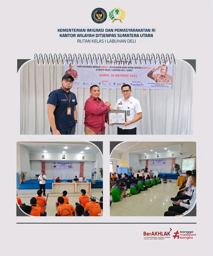 TIMELINES INEWS INVESTIGASI, Labuhan Deli Dalam upaya memberikan wawasan baru dan menumbuhkan semangat inovasi di kalangan warga binaan, Persatuan Robotika Seluruh Indonesia (PRSI) Dewan Pimpinan Wilayah (DPW) Sumatera Utara) bekerja sama dengan Rumah Tahanan Negara (Rutan) Kelas I Labuhan Deli menggelar kegiatan Workshop dan Demonstrasi Robotika, Kamis (30/10/2025).