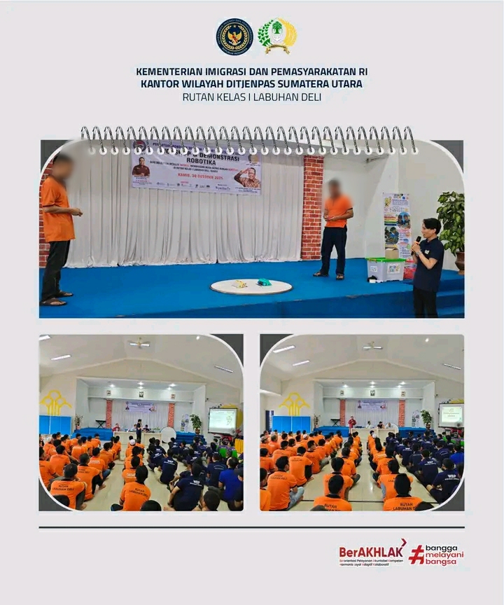 Kegiatan yang berlangsung di aula lantai 3 Rutan Labuhan Deli ini diikuti dengan antusias oleh 123 orang warga binaan pemasyarakatan (WBP). Melalui kegiatan ini, peserta diperkenalkan dengan dasar-dasar teknologi robotika serta pentingnya peran teknologi dalam kehidupan modern dan dunia kerja masa depan.