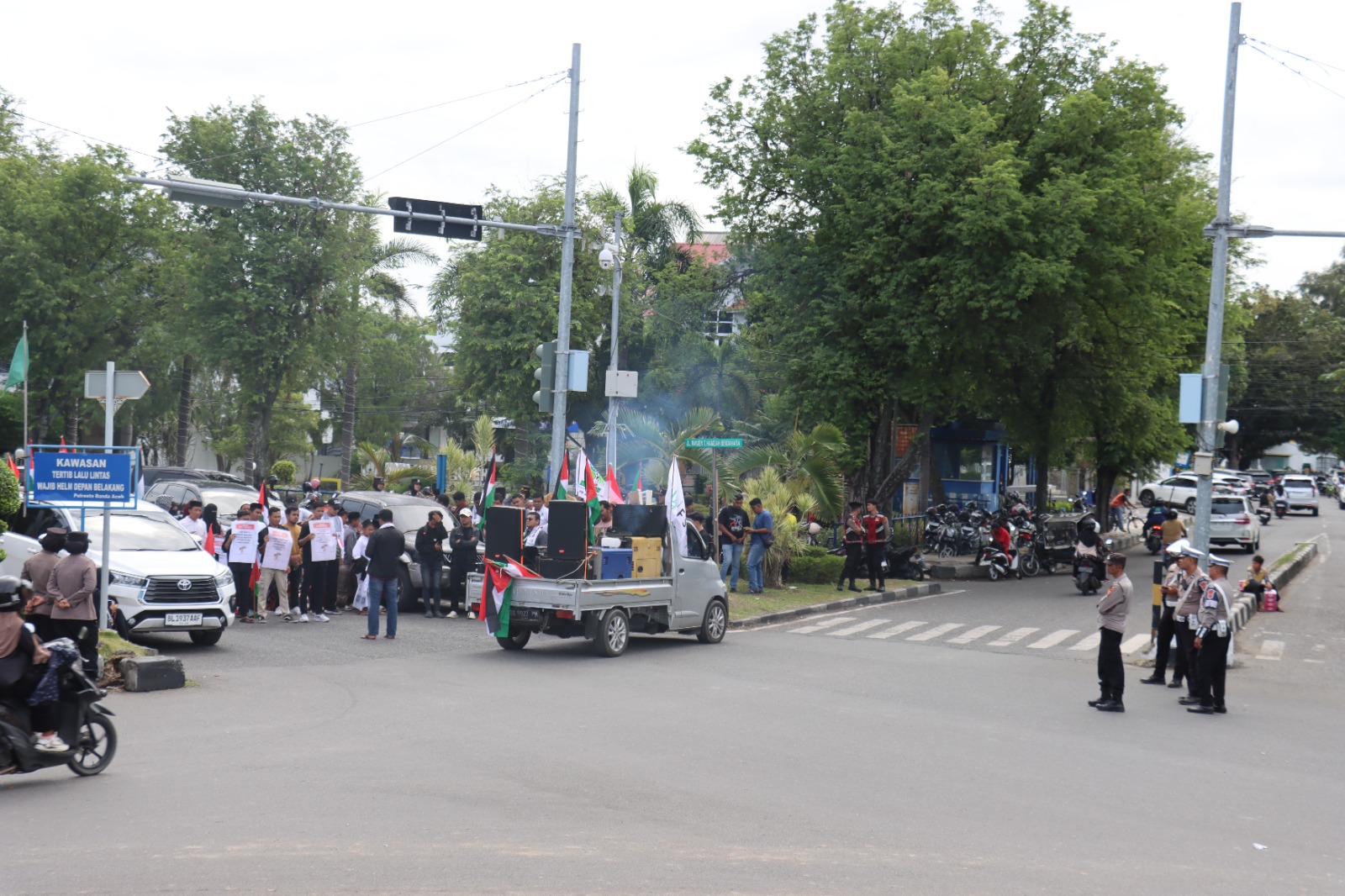 Sementara itu, Kapolresta Banda Aceh Kombes Pol Joko Heri Purwono melalui Kapolsek Kuta Alam AKP Suriya mengatakan, dalam pengamanan aksi unjukrasa ini, Polresta Banda Aceh menurunkan puluhan personel.