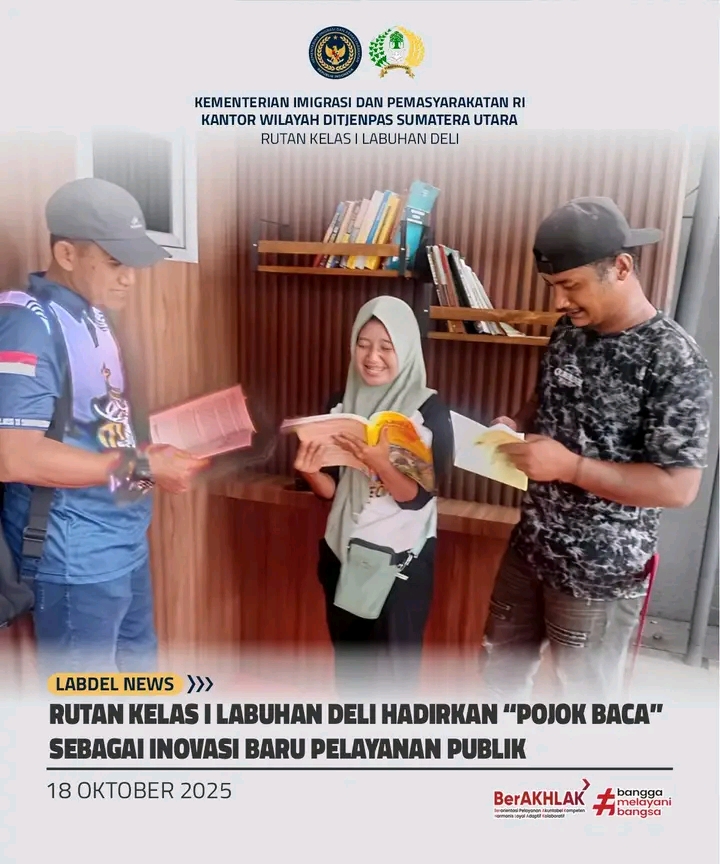 TIMELINES INEWS INVESTIGASI, Labuhan Deli Dalam upaya meningkatkan kualitas pelayanan publik dan menciptakan suasana yang lebih humanis di lingkungan pelayanan kunjungan, Rumah Tahanan Negara (Rutan) Kelas I Labuhan Deli menghadirkan inovasi baru berupa “Pojok Baca” bagi para pengunjung, Jumat (18/10).