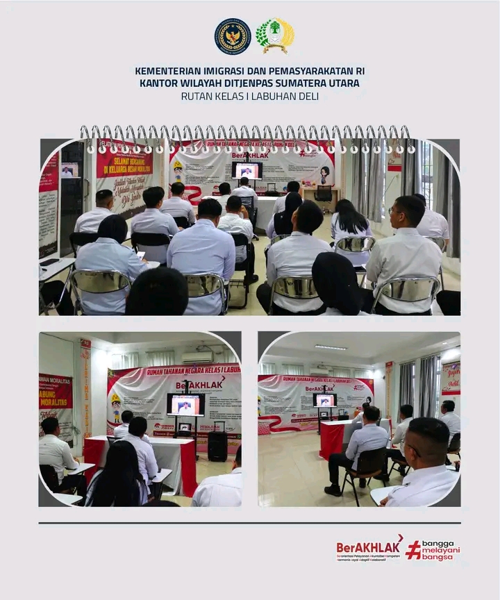 Kepala Rutan Kelas I Labuhan Deli, Eddy Junaedi, turut mengikuti kegiatan tersebut secara virtual dari Ruang Moralitas Lantai 2 Rutan Labuhan Deli, didampingi oleh para pejabat struktural dan pegawai Rutan.