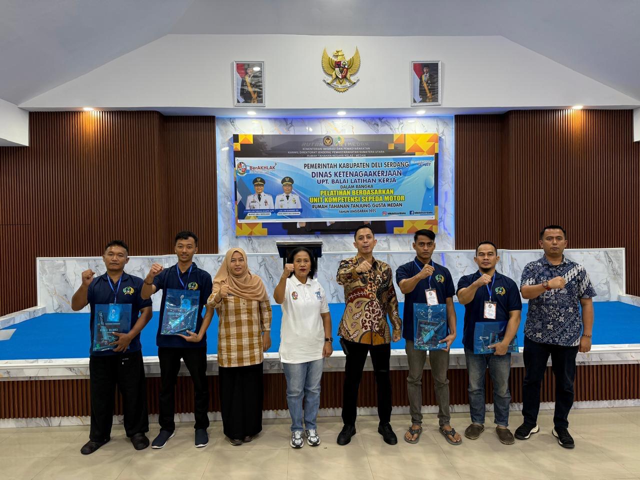 TIMELINES INEWS INVESTIGASI, Medan Rumah Tahanan (Rutan) Kelas I Medan kembali menunjukkan komitmennya dalam membekali warga binaan dengan keterampilan yang berguna setelah bebas. Kali ini, Rutan Kelas I Medan bekerja sama dengan Dinas Ketenagakerjaan Kabupaten Deli Serdang menyelenggarakan Pelatihan Keterampilan Montir Sepeda Motor yang resmi dibuka pada. Jumat (10/10) di Aula Sahardjo Rutan.