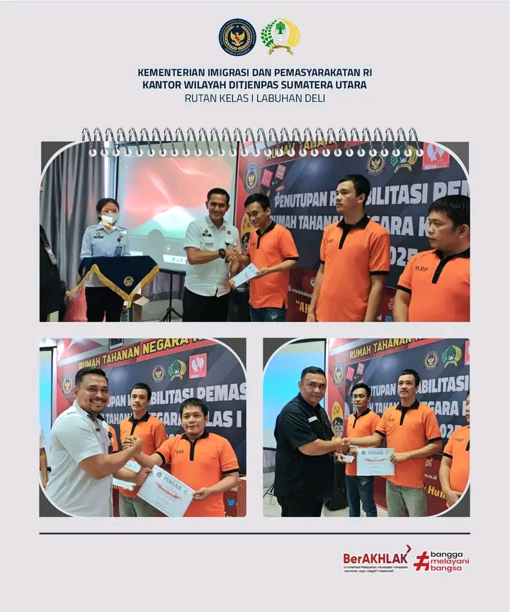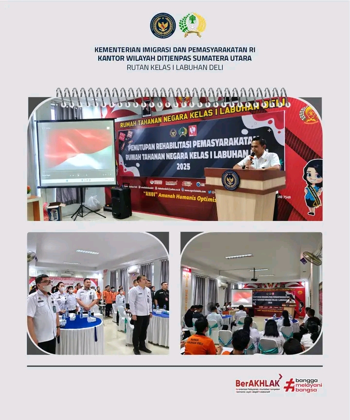 TIMELINES INEWS INVESTIGASI, Labuhan Deli Rumah Tahanan Negara (Rutan) Kelas I Labuhan Deli kembali menorehkan langkah positif dalam pelaksanaan program pembinaan bagi Warga Binaan Pemasyarakatan (WBP). Kali ini, kegiatan tersebut diwujudkan melalui penutupan Program Rehabilitasi Pemasyarakatan, yang digelar di Ruang Moralitas lantai 2 Rutan Labuhan Deli, pada Kamis (30/10/2025).