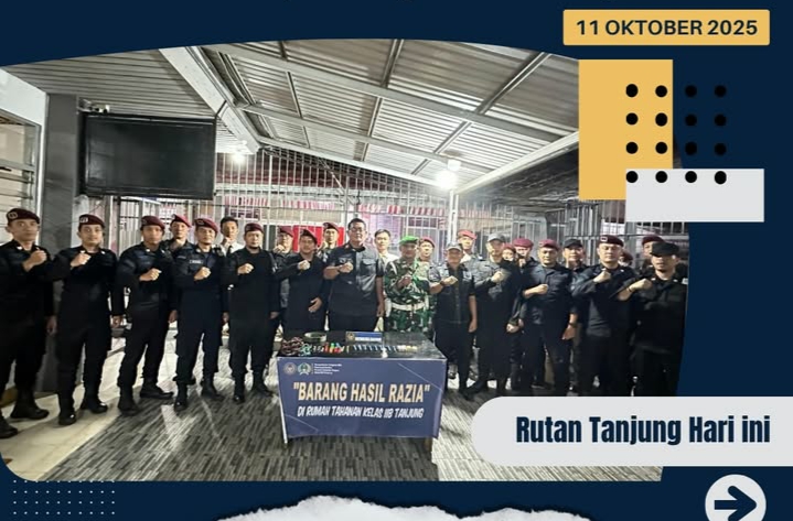 TIMELINES INEWS INVESTIGASI, Tanjung, 11 Oktober 2025 Dalam rangka mencegah terjadinya gangguan keamanan dan ketertiban (Kamtib) serta memberantas penyalahgunaan dan peredaran gelap narkotika, jajaran Rumah Tahanan Negara (Rutan) Kelas IIB Tanjung melaksanakan inspeksi razia mendadak di kamar hunian warga binaan. Kegiatan ini turut melibatkan aparat penegak hukum setempat, termasuk personel dari Kodim 1008/Tabalong.