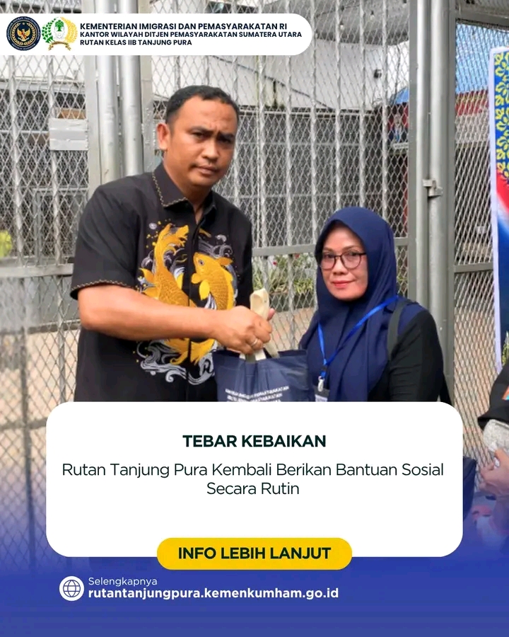 (Rutan) Kelas IIB Tanjung Pura kembali menebar kebaikan melalui kegiatan bantuan sosial rutin kepada keluarga warga binaan yang membutuhkan, pada Jumat (31/10/2025).