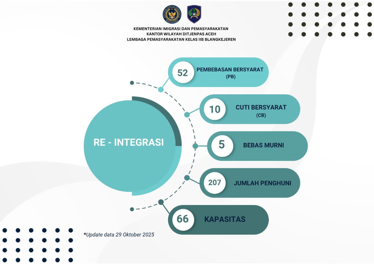 Di tingkat satuan kerja, Lapas Kelas IIB Blangkejeren turut berperan aktif dalam mewujudkan visi besar tersebut. Program pembinaan Warga Binaan Pemasyarakatan (WBP) kini tidak hanya berfokus pada aspek moral dan disiplin, tetapi juga diarahkan pada peningkatan dampak sosial dan ekonomi. Melalui berbagai kegiatan pemberdayaan, seperti pertanian produktif, industri kreatif, serta pelatihan keterampilan kerja, para WBP diberi kesempatan untuk belajar, berkarya, dan berkontribusi.