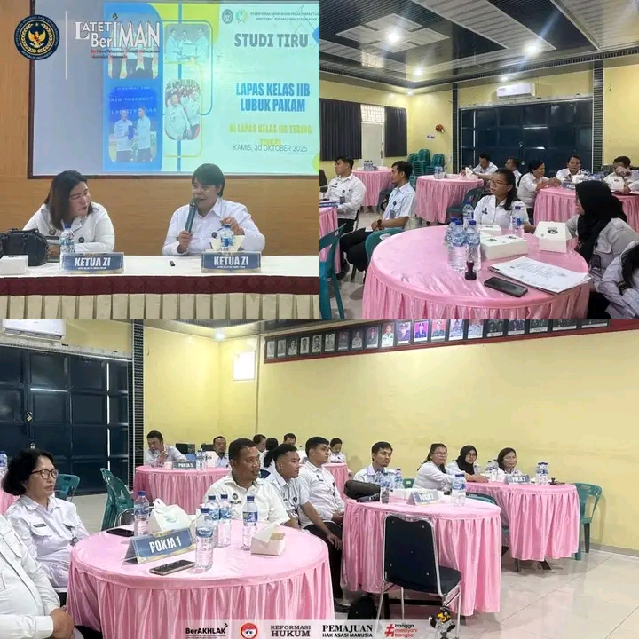 memperkuat sinergi dan mendorong terwujudnya satuan kerja pemasyarakatan yang berintegritas, Lembaga Pemasyarakatan (Lapas) Kelas IIB Tebing Tinggi menerima kunjungan studi tiru dari Lapas Kelas IIB Lubuk Pakam pada Kamis (30/10/2025), bertempat di Aula Sasana Tama Lapas Tebing Tinggi.