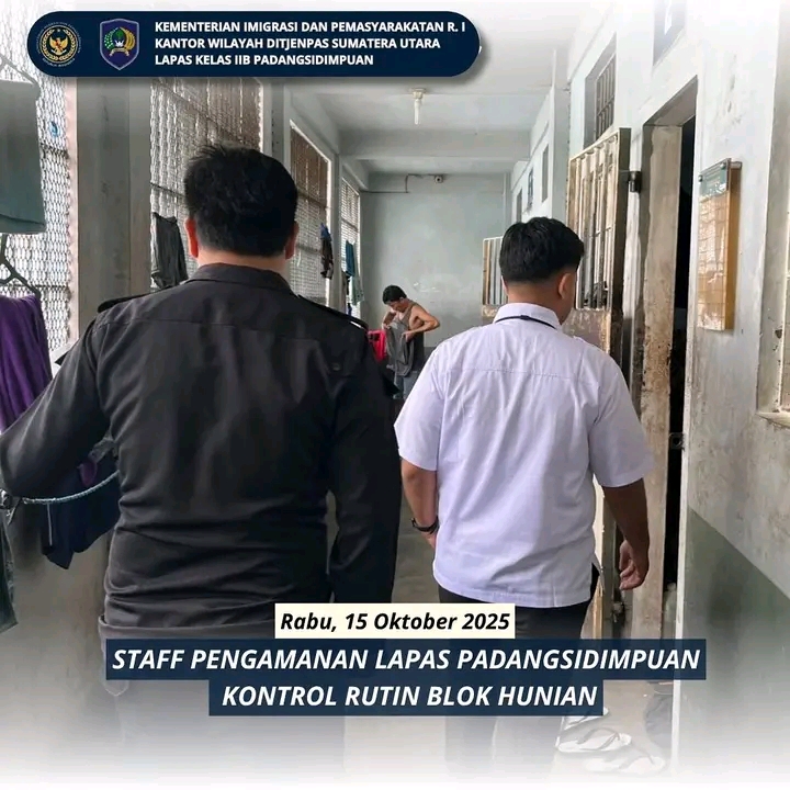 TIMELINES INEWS INVESTIGASI, Padangsidimpuan, Staff pengamanan Lapas Kelas IIB Padangsidimpuan kembali melakukan kontrol rutin sebagai upaya menjaga stabilitas keamanan dan ketertiban di dalam lapas. Kontrol ini digelar di area-area strategis seperti blok hunian dan kamar hunian, Rabu (16/10/2025)