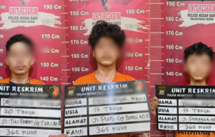 Kini, ketiga pelaku telah diamankan di Mako Polsek Medan Baru untuk proses hukum lebih lanjut. Mereka dijerat dengan Pasal 365 KUHP tentang Pencurian dengan Kekerasan, Tegasnya.