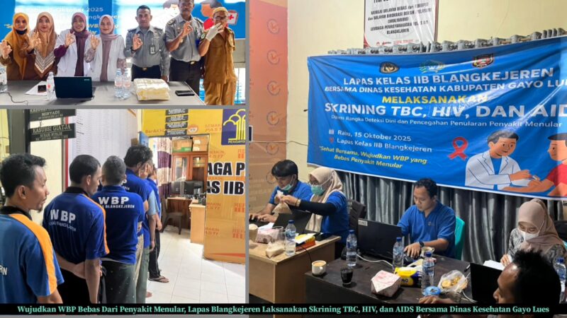TLii | Aceh | Blangkejeren — Dalam upaya mewujudkan lingkungan pemasyarakatan yang sehat dan bebas dari penyakit menular, Lembaga Pemasyarakatan (Lapas) Kelas IIB Blangkejeren melaksanakan kegiatan skrining TBC, HIV, dan AIDS bagi seluruh Warga Binaan Pemasyarakatan (WBP). (15/10/2025)