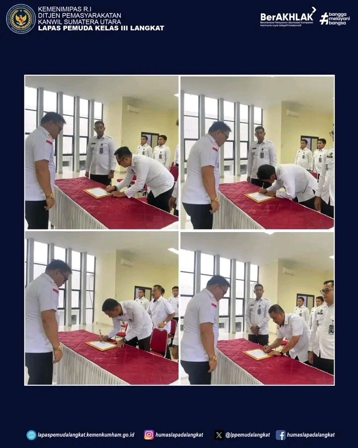 TIMELINES INEWS INVESTIGASI, Langkat Lapas Pemuda Kelas III Langkat mengikuti kegiatan Penandatanganan Komitmen Bersama Petugas Pemasyarakatan secara virtual yang dilaksanakan secara serentak di seluruh Indonesia. Senin (20/10/2025). Bertempat di Aula Lt.III Lapas Pemuda Langkat.