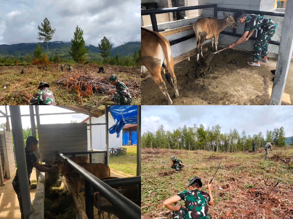 TLii | Aceh | Blangkejeren, Gayo Lues – Prajurit Yonif TP 855/RD menunjukkan komitmen ganda mereka dalam mendukung program pemerintah di bidang Ketahanan Pangan Nasional. Rutinitas satuan tidak hanya fokus pada kesiapan tempur, tetapi juga pada optimalisasi lahan dan ternak, mencerminkan semangat kemandirian logistik dan sinergi dengan masyarakat.
