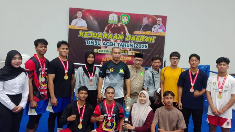 Banda Aceh — Tim DJ Boxing Aceh Besar tampil perkasa pada Final Kejuaraan Daerah (Kejurda) Tinju Aceh 2025 yang digelar di GOR KONI Aceh, Sabtu (15/11/2025). Mereka mendominasi arena dan berhasil membawa pulang 5 medali emas, 1 perak, dan 3 perunggu, menjadikan DJ Boxing salah satu sasana paling produktif pada ajang bergengsi tersebut.