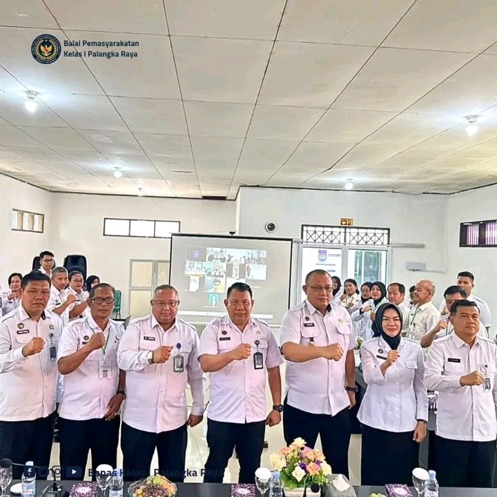 Kepala Kantor Wilayah Ditjen Pemasyarakatan Kalimantan Tengah dalam sambutannya turut menegaskan pentingnya peningkatan kapasitas PK untuk mendukung pelayanan pemasyarakatan yang berkeadilan, humanis, dan berorientasi pada pembinaan. Selepas sesi pembukaan, kegiatan dilanjutkan dengan foto bersama peserta luring sebagai simbol kebersamaan.