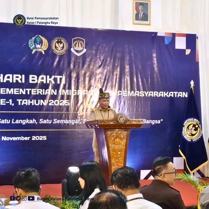 TIMELINES INEWS INVESTIGASI, Palangka Raya Balai Pemasyarakatan (Bapas) Palangka Raya turut menghadiri momen peringatan Hari Bakti Kementerian Imigrasi dan Pemasyarakatan (Kemenimipas) Ke-1 Tahun 2025 yang digelar dalam bentuk tasyakuran di Aula Rutan Kelas IIA Palangka Raya, Rabu (19/11/2025).