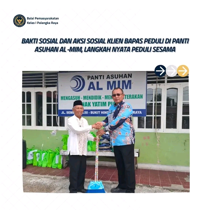 TIMELINES INEWS INVESTIGASI, Palangka Raya, 06 November 2025 Dalam rangka Gerakan Nasional Pemasyarakatan Klien Balai Pemasyarakatan Peduli 2025, Balai Pemasyarakatan (Bapas) Kelas I Palangka Raya kembali melaksanakan kegiatan Aksi Sosial Klien Bapas Peduli dan Bakti Sosial periode November 2025 di Panti Asuhan Al-Mim, Kota Palangka Raya, Kamis (6/11/2025).