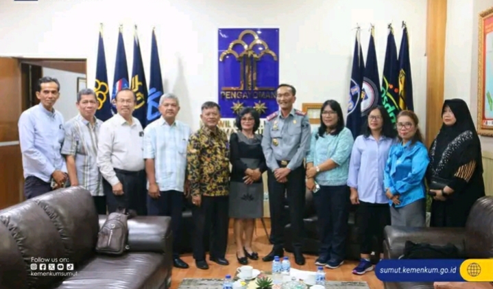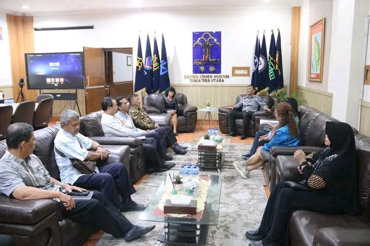 TIMELINES INEWS INVESTIGASI, Medan Berikan penjelasan terkait kepastian hukum kedudukan kampus Darma Agung, Kepala Kantor Wilayah Kementerian Hukum Sumatera Utara Ignatius Silalahi menerima kunjungan audiensi dari Universitas Darma Agung, bertempat di ruang kerja Kakanwil. (11/11/2025)